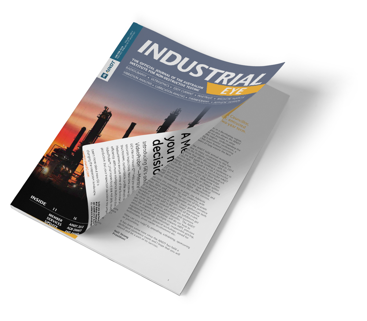 Our goal is to promote the disciplines of NDT and CM as a profession and support our members with current news via our website, e-newsletter and the journal; “Industrial Eye”.